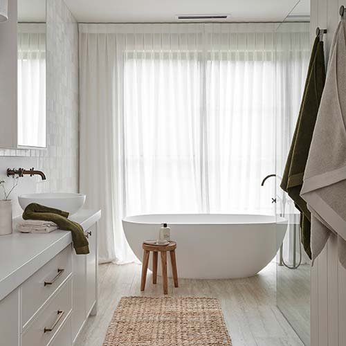 The Paros waffle weave range spans both bed throws and bath towels. Absorbency is excellent on the towels, and they dry quickly between uses. The bed throws drape beautifully and layer well with linen for a textured, editorial look.